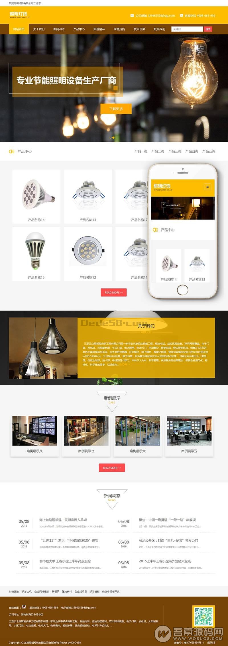 模板名称:照明灯饰企业网站源码,织梦内核开发,手机自适应浏览 整站打包下载