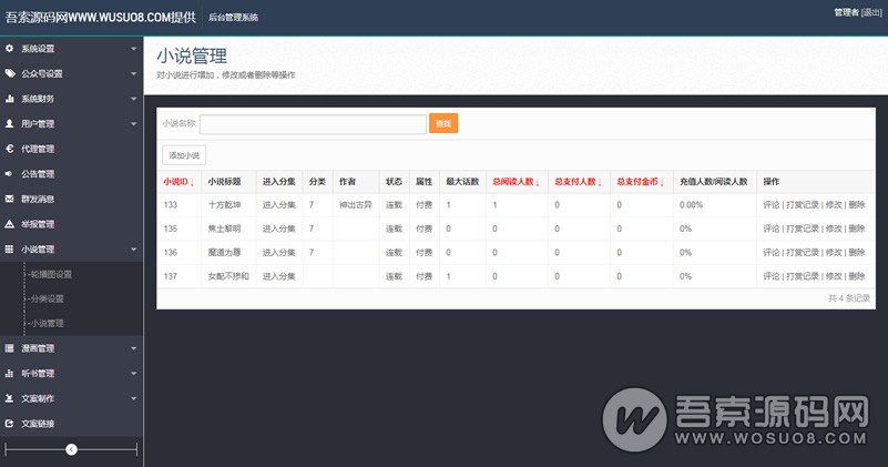 今天给大家带来一套功能强大的微信小说漫画听书分销系统,系统功能完善,完美无错运行,前台界面设计得相当专业,系统内置了个人免签支付系统。
