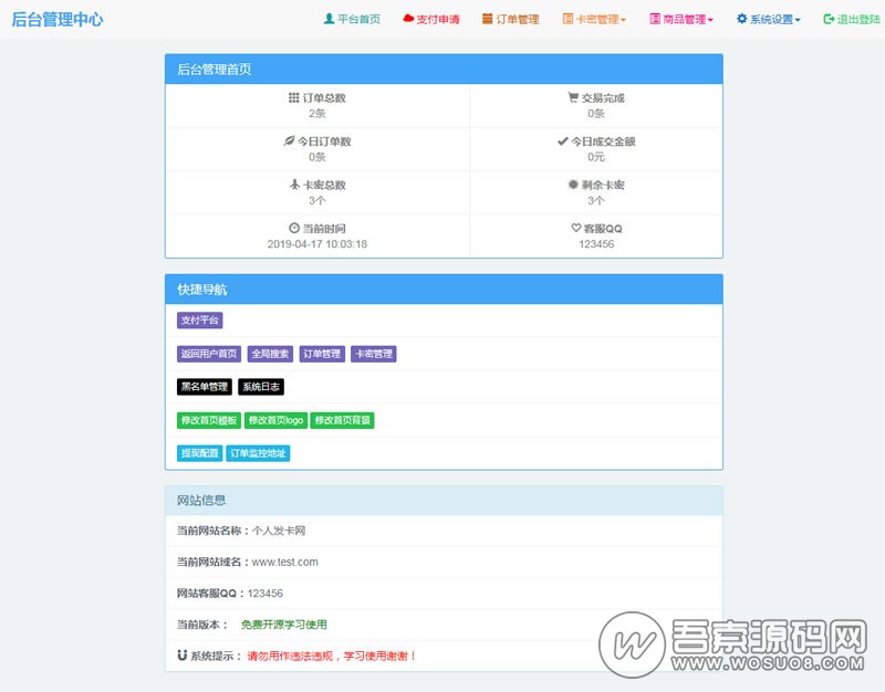 今天分享一款非常不错的个人发卡平台,自动发卡/免签支付/即时到账系统源码 系统内置4套模板,可自由切换。6.0的更新内容:去除了后台一些弹窗广告,修复了使用苹果浏览器会出现按钮样式失效问题,以及高亮等 前台模板美化 后台模板也调整了 删了一些没什么用的注释文件和伪静态文件 其余功能请自行体验 可以说比较完整的版本