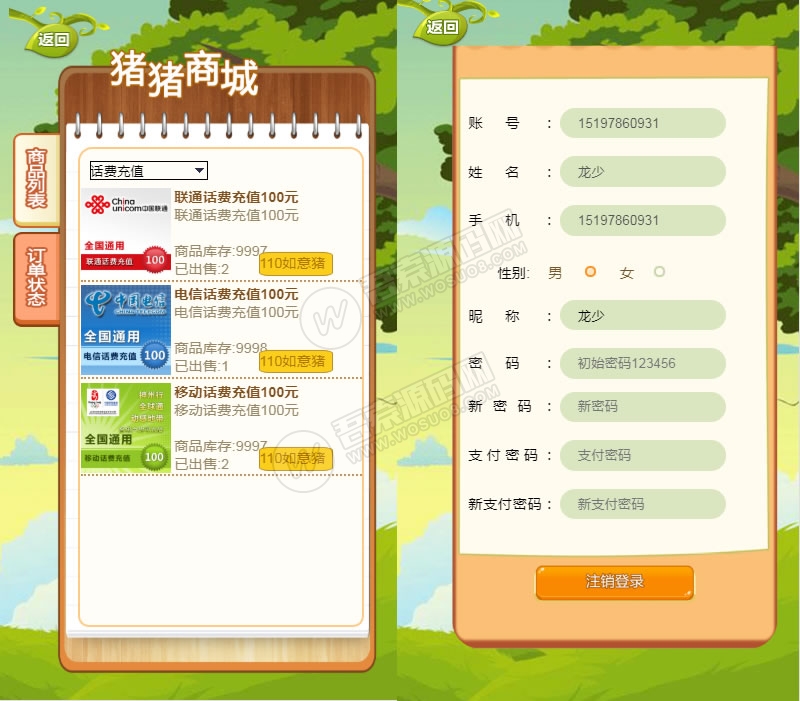 2.玩家还可以在猪猪购物对自己的手机进行在线充值。