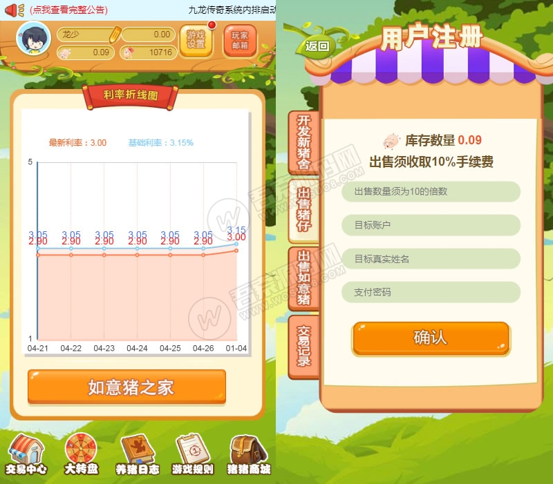 3.玩家可以通过商城将自己手中的如意猪卖给平台,想卖就卖,妈妈再也不用担心我的如意猪卖给谁了。彻底解决新玩家担心兔子卖给谁的问题!