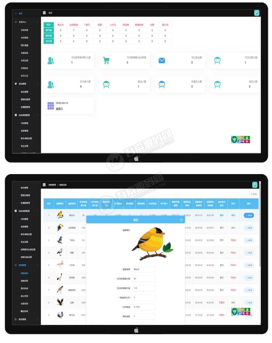 神鸟区块养殖系统/全新定制/UI页面精美/区块宠物系统/金融理财可封装打包