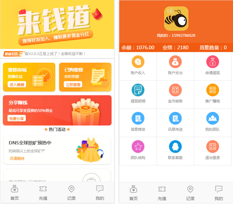 蜜蜂赚是一款养蜜蜂赚挂机赚钱软件,挂机理财分红,金融投资静态返利,用户注册就能免费领取蜜蜂,满10即可提取,不需实名,推广还送奖励,享受50%佣金提成,还可打包封装APP。